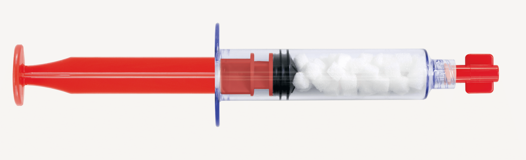 メリットのEmboCubeは,ゼラチンスポンジに速度,精度,および一貫性をもたらします。EmboCubeは均一にカットされたゼラチンスポンジで,奖章にプリロードされています。®より迅速な準備と正確な配達を可能にします。