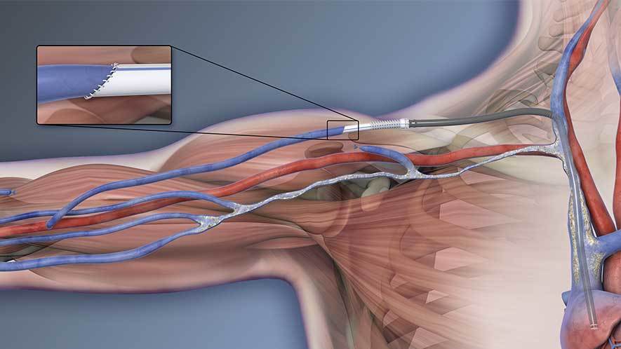 经皮血管内处理闭塞的HeRO透析通路装置。