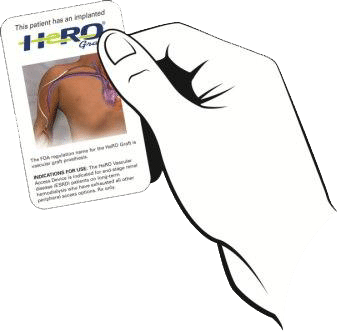 英雄贪污的制造商为您创造了一个钱包卡,让您随身携带。将此卡显示到透析中心护理团队将帮助他们知道您有一个英雄移植物。