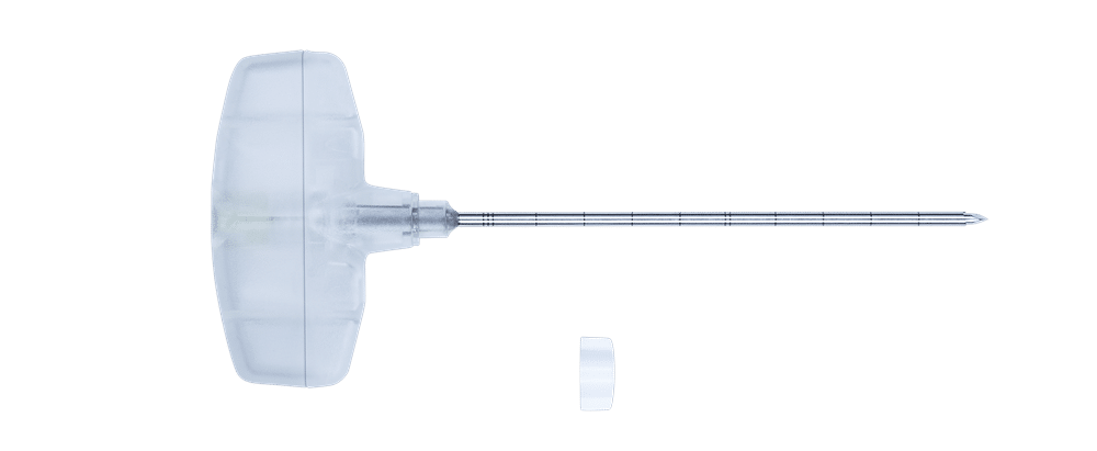 O medidor de deep didiade visual e marcações centimétricas mostrarão saliências além da agulha de acesso apontada de 11G, 10厘米ou 15厘米(ao usar com acessórios de osso Preston ou sistemas de biópsia óssea Merit)。