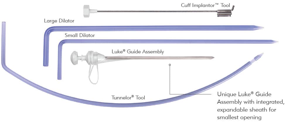 Our suite designed for PD catheter single incision and design, in order to simplify the implant procedure and improve efficiency.A variety of suite option can be used to support your particular embedded method and way of tunnel.